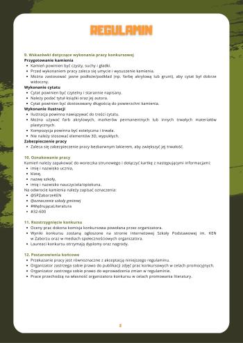 Celem konkursu jest zachęcenie młodych ludzi do sięgania po książki i twórczego wyrażania swoich inspiracji literackich. Zadanie polega na przygotowaniu pracy literacko-plastycznej – uczestnicy wybierają ulubiony cytat z książki, a następnie przedstawiają go w formie artystycznej na kamieniu, uzupełniając o ilustrację nawiązującą do jego treści.