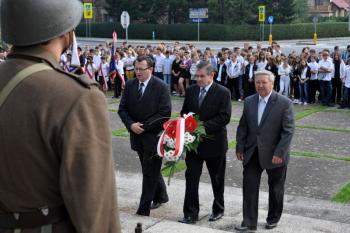 Po przemówieniach zebrani obejrzeli i wysłuchali programu artystycznego w wykonaniu uczniów Gminnego Gimnazjum nr 1w Rajsku. Na zakończenie uroczystości delegacje złożyły wiązanki kwiatów pod pomnikiem, oddając w ten sposób hołd poległym w walce o wolną Ojczyznę. Wartę honorową pełnili członkowie Grupy Rekonstrukcji Historycznej Batalionu Obrony Narodowej „Oświęcim”.