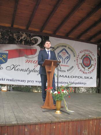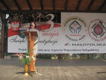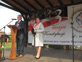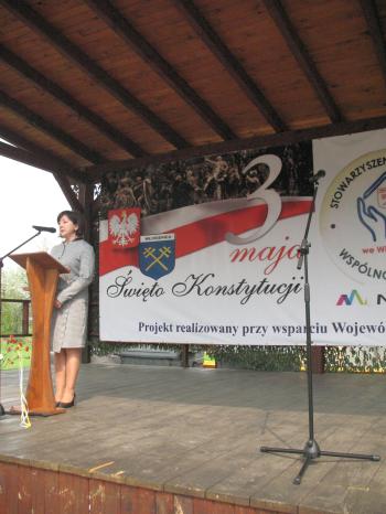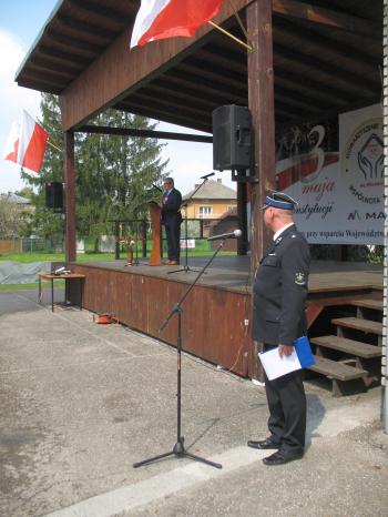 Rozpoczęła się parada Strażacka, przemarsz, meldunki odegranie hymnu narodowego oraz wciągnięcie flagi na maszt. Po czym Sołtys Władysław Zaliński wygłosił referat dotyczący Konstytucji 3 Maja i jej znaczenia dla historii Polski. W wielkim skrócie można przedstawić znaczenie tego referatu: