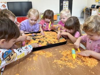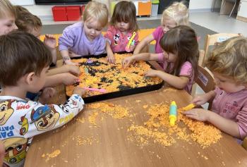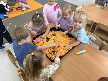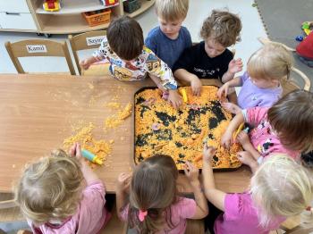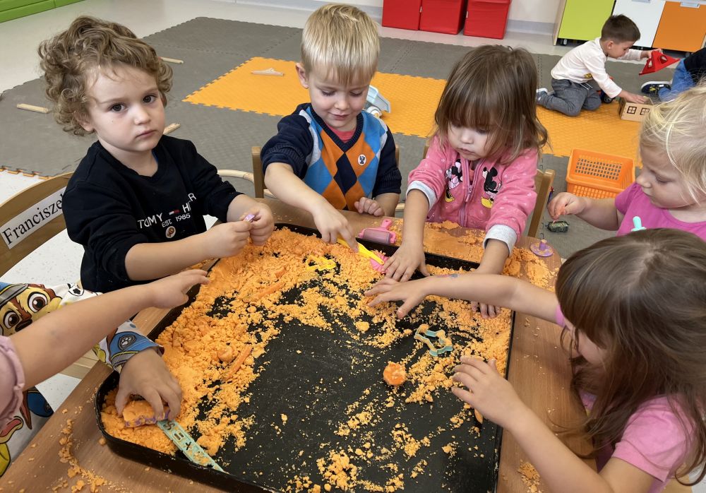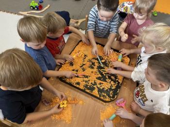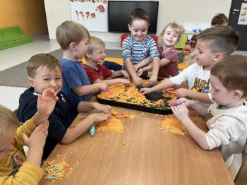 Podczas zajęć przedszkolaki miały okazję lepić, budować, wałkować i tworzyć różnorodne kształty z foremek, wykorzystując marchewkową masę plastyczną. Zabawa pobudziła ich wyobraźnię, kreatywność oraz sprawność manualną. Dzieci z zapałem tworzyły marchewkowe zwierzątka, ciasteczka, a nawet małe rzeźby!