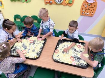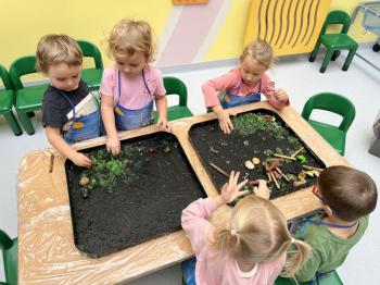 Dzieci odkrywały też „skarby ukryte w piasku”, rozwijając spostrzegawczość i cierpliwość. Nie zabrakło kreatywności – przedszkolaki same stworzyły ciastolinowe jeże oraz różnorodne jesienne pejzaże, wykazując się pomysłowością i zręcznością.