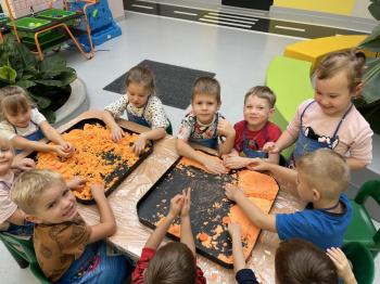 W Dyniolinie natomiast odkrywały pestki ukryte w pachnącej, pomarańczowej masie z dyni. Było to wspaniałe połączenie zabawy z poznawaniem darów jesieni!