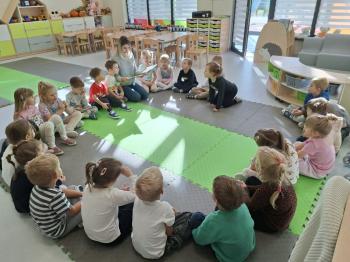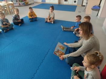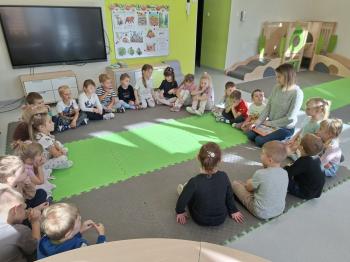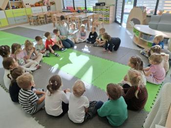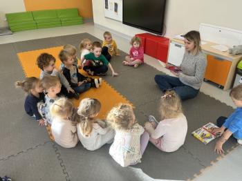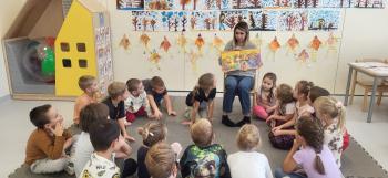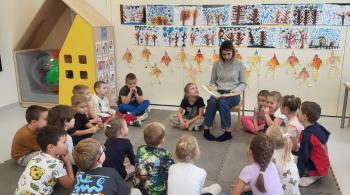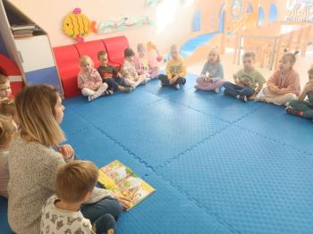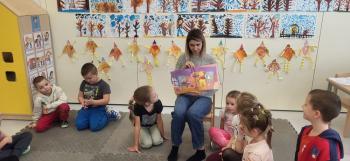29 października 2025 odbyło się spotkanie czytelnicze z panią Agnieszką, bibliotekarką z Gminnej Biblioteki w Brzezince. Pani Agnieszka przeczytała przedszkolakom kilka książeczek o tematyce jesiennej.