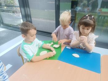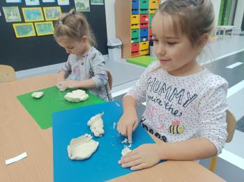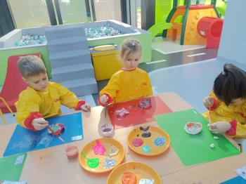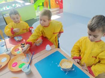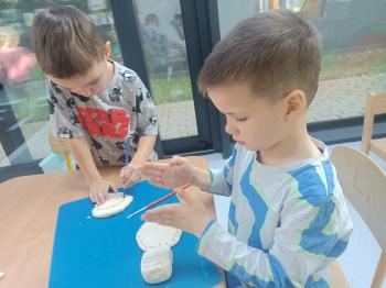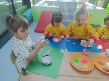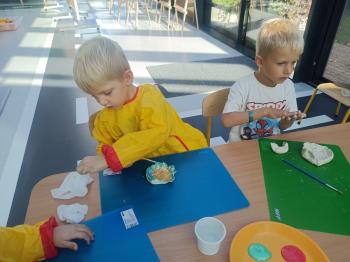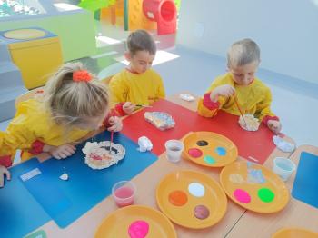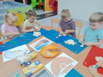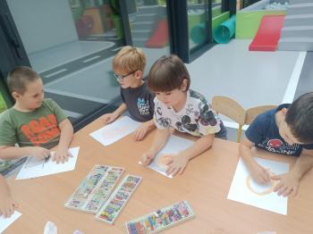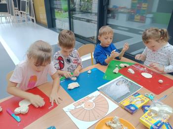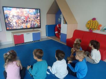 W ramach realizacji kolejnych zadań projektowych dzieci poznały twórczość Stanisława Wyspiańskiego na podstawie reprodukcji jego obrazów oraz twórczości artystycznej. Oczami Wyspiańskiego rysowały pastelami olejnymi swojego ulubionego kolegę. Poznały również pojęcie witrażu. Podczas wycieczki do Galerii Sztuki Polskiej XIXw. w Muzeum Narodowym w Krakowie przedszkolaki miały okazję obserwować malarstwo Jana Matejki, posłuchać o jego twórczości oraz później na zajęciach ćwiczyć trudną technikę szkicu. W multimedialnej podróży do Grecji dzieci dowiedziały się o charakterystycznych cechach tej kultury, lepiły z gliny samoutwardzalnej wazę oraz wykonywały projekt teatru greckiego.