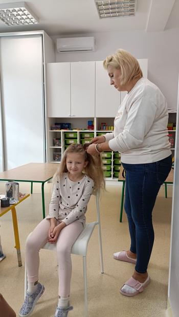 Następnie wykonała piękne fryzury chętnym dzieciom. Po tak wspaniałym spotkaniu każdy na pewno z chęcią będzie chodził do fryzjera.