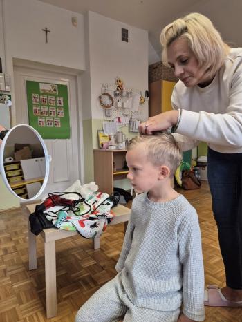 17 października nasze przedszkole odwiedziła fryzjerka, pani Katarzyna Dąbrowska, mama naszego przedszkolaka Stasia.