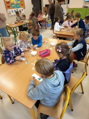 21 i 28 październik były dniami , w których kolejno grupa Podróżników oraz Tropicieli odwiedzła Szkołę Podstawową w Porębie Wielkiej. Przedszkolaki uczestniczyły w zajęciach bibliotecznych prowadzonych przez panią Basię Gabryś. Z zainteresowaniem słuchały ciekawostek o książkach, ich gatunkach i roli, jaką pełnią w życiu człowieka. Wykonały kolorowe zakładki do książek oraz wykazały się pomysłowością i zręcznością podczas zabaw na świetlicy. Na zakończenie spotkania dzieci otrzymały w prezencie książki, do których włożyły własnoręcznie wykonane zakładki. Bardzo dziękujemy pani dyrektor Marcie Brzezieckiej oraz paniom Barbarze Gabryś i Lucynie Wajdzik za zaproszenie i miło spędzony czas podczas pobytu w szkole.