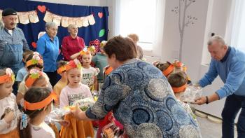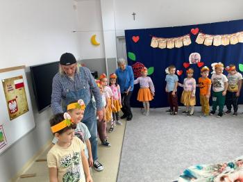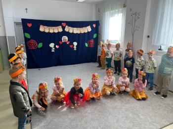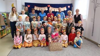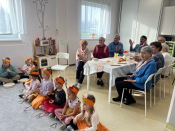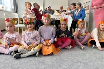 Dzieci z grupy Tropicieli zaprezentowały krótki występ artystyczny, a następnie wraz z naszymi gośćmi stworzyli jesienną orkiestrę. Przedszkolaki wręczyły również prezenty, przyniesione w ramach akcji: "Dla seniora coś pysznego, coś słodkiego, coś ciepłego" organizowanej w naszym przedszkolu, za co serdecznie dziękujemy.