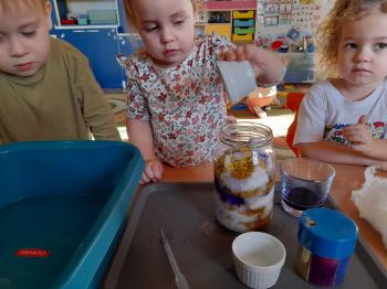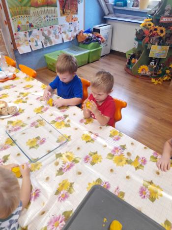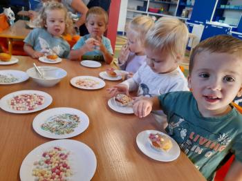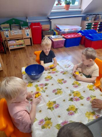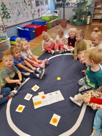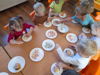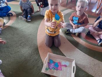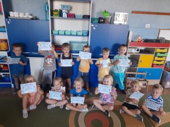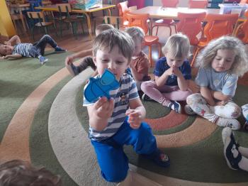 Sprawozdanie z realizacji Projektu Edukacyjnego ,,Z Kicią Kocią Maluchy Zmieniają się w Zuchy” 2023/2024. Projekt realizowany był w oddziale I Słoneczka przez nauczycielkę Patrycję Piekarską. Organizatorem i autorem projektu była Pani Daria Bakowicz-Ryżyk oraz Przedszkole Baśniowa Kraina w Dobiegniewie. Celem projektu było propagowanie czytelnictwa wśród najmłodszych przedszkolaków, łagodna adaptacja do warunków przedszkolnych, poprzez utożsamianie się z bohaterami książkowymi oraz rozwijanie potencjału poznawczego dzieci. Projekt rozpoczął się 1 września 2023 roku i trwał do końca roku szkolnego 2024 roku. W podanym czasie oddział I w dowolnej kolejności realizował zadania projektowe. Realizując poszczególne zadania podane zabawy traktowaliśmy jako jeden scenariusz zajęcia głównego. Do zrealizowania projektu niezbędne były niżej wymienione książki z serii o Kici Koci: 1. Kicia Kocia sprząta 2. Kicia Kocia gotuje 3. Kicia Kocia w pociągu 4. Kicia Kocia w kosmosie 5. Kicia Kocia. Zima 6. Kicia Kocia i straszna burza 7. Kicia Kocia zostaje policjantką 8. Kicia Kocia na plaży Oddział I zaopatrzył się także w maskotkę Kici Koci. We wrześniu realizacja projektu „Z Kicią Kocią maluchy zmieniają się w zuchy” przybliżyła postać Kici Koci, która z kolei zapoznała dzieci ze schematem dnia w przedszkolu. Stworzony został kodeks przedszkolaka. Czas umilił spacer po przedszkolu w czasie którego każdy poznał rozmieszczenie wszystkich sal w placówce oraz poznał zasady bezpieczeństwa w niej panujące. W październiku wraz z Kicią Kocią obchodzony był „Dzień Mycia Rąk” (15.10.2023) – dzieci uwrażliwione zostały na higienę mycia rąk, w kontekście bajki, zwłaszcza przed dotykaniem produktów spożywczych, jedzenia. Zaprezentowanie dzieciom etapów prawidłowego mycia rąk. Przedszkolaki brały udział w eksperymencie „Uciekający brud” z pieprzem i płynem do mycia naczyń. Dzięki „Smakowitym zagadkom” – próbowały ciasteczek o różnym smaku, określały i nazywały te smaki. „Ciasteczkowe kształty” to zabawa w czasie, której odrysowały kształty od foremek na tekturze, oraz dopasowywały foremki do tekturowych kształtów. Układały rytmy z wyciętych kształtów. Dzieci dokonywały „Ważenia i odmierzania” – bawiły się z wagą szalkową, próbowały zrównoważyć wagę, oraz dekorowały ciasteczka. W listopadzie Kicia Kocia przyjechała do nas w pociągu z książką pt. „Kicia Kocia w pociągu” dzieci rozmawiały na temat treści książki, nazywały poszczególne miejsca, przedmioty, które znajdują się na stacji kolejowej, zapoznane zostały z wyglądem oraz nazwami pociągów od najstarszych po najnowocześniejsze z wykorzystaniem obrazków. Nazywały je, wskazywały różnice, układały sekwencje z wagoników różnego koloru, mierzyły powstałe sekwencje we wcześniejszym zadaniu za pomocą sznurka. Określały, który wagon jest najdłuższy, a który najkrótszy. W grudniu KICIA KOCIA zabrała dzieci na wycieczkę w kosmos. „Co to jest kosmos?” – dzieci odpowiadały na to pytanie oglądając film na tablicy multimedialnej, po czym zrobiły „Kosmos w słoiku” tworząc jeden większy słoik grupowy według instrukcji z kanału YouTube. W styczniu czytaliśmy książkę pt.,,Kicia Kocia zimą" oraz rozmawialiśmy na jej temat. Dzieci poznały „Sporty zimowe” m.in. narciarstwo, łyżwiarstwo, saneczkarstwo, hokej na lodzie itp. w oparciu o ilustracje. Naśladowały sposób poruszania się sportowców uprawiających daną dyscyplinę. Bawiły się śnieżkami ugniatając kulę z kartki papieru, rzucając kulami śniegowymi do celu, podrzucając kule wykorzystując do tego chustę animacyjną. Dzieci zrobiły również „Sztuczny śnieg” z sody oczyszczonej i pianki do golenia. Bawiły się w „Śnieżne eksperymentowanie” wykonując eksperymenty z prawdziwym śniegiem. Sprawdzały: jaki jest śnieg, brudny czy czysty, rozpuszczony śnieg. W kwietniu rozmawialiśmy na temat treści książki pt. „Kicia Kocia zostaje Policjantką”. Chętne dzieci wcielały się w rolę policjanta, zapoznały się z sygnalizacją świetlną, nazywały kolory oraz czynności, które należy wykonać widząc dane światło. Wykonały pracę plastyczną pt. „Chcę być policjantem”.W maju rozmawialiśmy na temat książki pt. „Kicia Kocia i straszna burza”. Dzieci rozwiązywały zagadki słuchowe związane z odgłosami zjawisk przyrodniczych: burza, ulewny deszcz, wiatr, grad, mżawka itp. Bawiły się w „Krople deszczu” zabawę ruchową z elementami ćwiczeń liczbowych. Zorganizowały „Koncert burzowy” czyli improwizację muzyczną z użyciem wybranych instrumentów do wybranego utworu muzycznego. Odgłosy deszczu imitowały grzechotki, a grzmotów talerz. W czerwcu Kicia Kocia zabrała nas na plażę. „Co weźmiemy na plażę?” zadaniem dzieci było wskazanie oraz nazywanie tych rzeczy, które są potrzebne podczas plażowania, np. krem z filtrem UV, kapelusz, strój kąpielowy, koło do pływania itp. Dzieci oglądały różne morskie skarby w tym muszelki i opisywały ich wyglądu, układały je od największej do najmniejszej, odciskały w ciastolinie muszelki, następnie dopasowywały kształty muszelek do odcisków. Projekt zakończono w miesiącu czerwcu 2024r. rozdaniem dyplomów z podziękowaniem za udział w powyższym projekcie. |