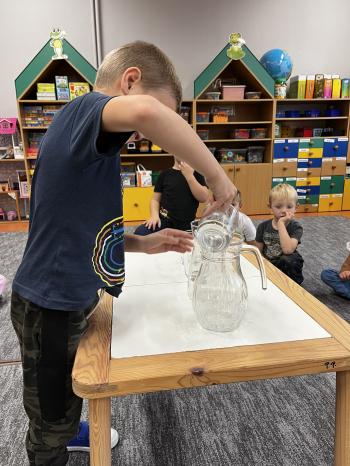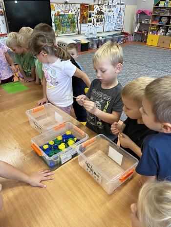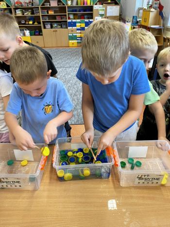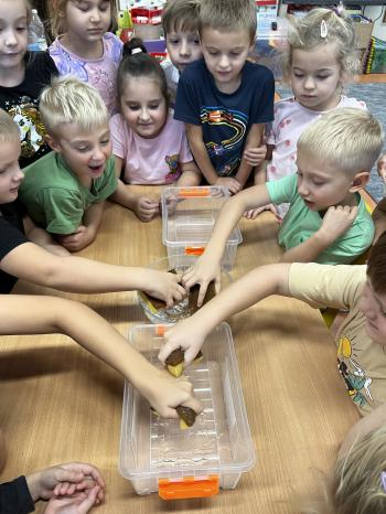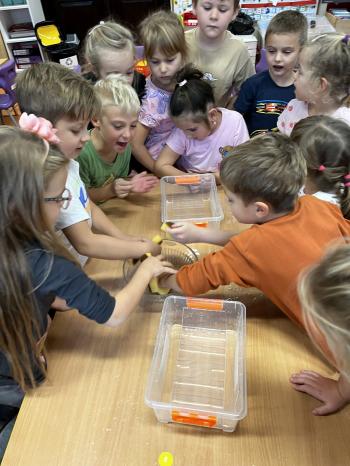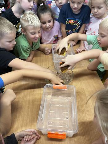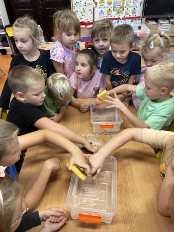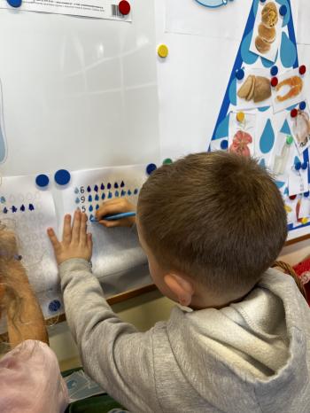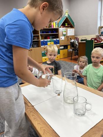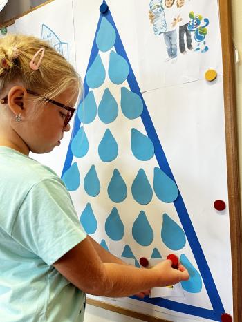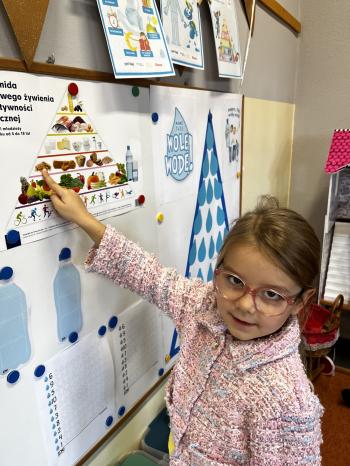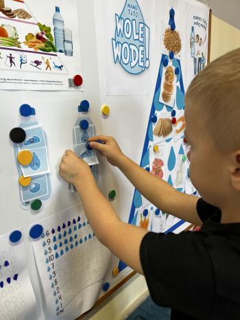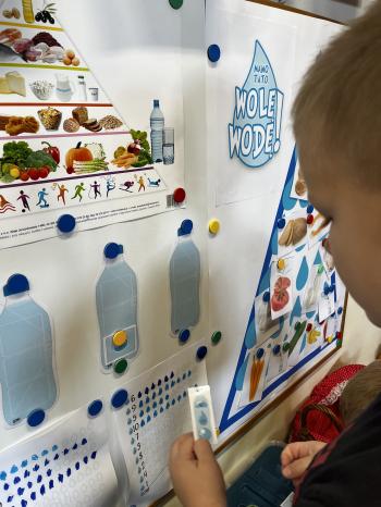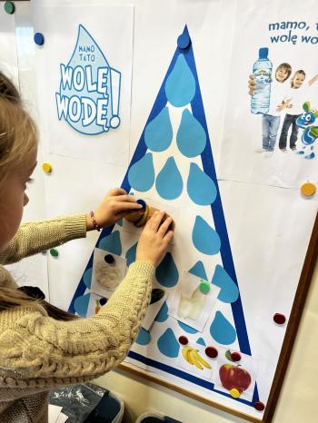 Przedszkolaki z oddział „Żabek” pod kierunkiem pani Patrycji brały udział w realizacji projektu pt. „Mamo, tato wolę wodę!. Celem tego edukacyjnego projektu jest kształtowanie u dzieci prawidłowych nawyków żywieniowych oraz uświadomienie im jak ważną funkcję pełni woda w ich diecie każdego dnia. |
