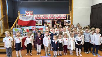 | & listopada nasze przedszkolaki przy wtórach piesni Józefa Wybickiego o 11:11 Odśpiewały hymn Polski. |