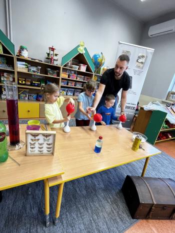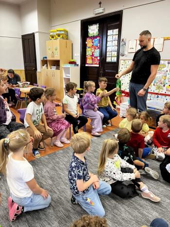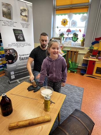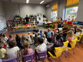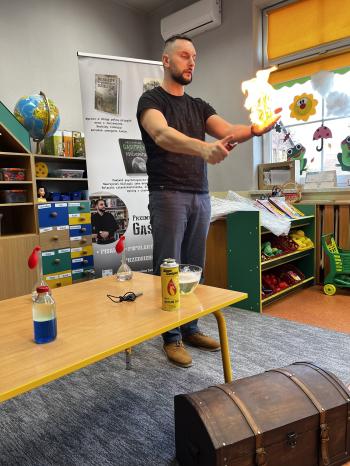 12 listopada przedszkolaki uczestniczyły w warsztatach „Fabryka kreatywności” sponsorowanych przez Radę Rodziców. Warsztaty prowadzone przez pana P. Gąsiorka popularyzatora nauki były inspirujące i wzbudziły ogromną ciekawość dzieci. Mali odkrywcy brali udział w eksperymentach, podczas których doświadczali magii. „Zmuszało” to dzieci do przemyśleń i szukania rozwikłania zagadki pt. „Jak to się mogło stać?”. Dziękujemy Radzie Rodziców za organizację warsztatów. |