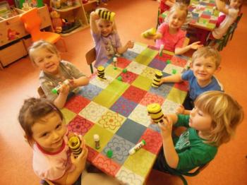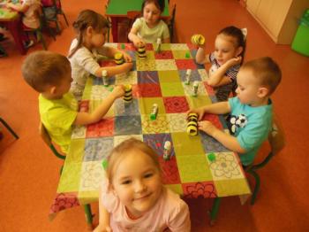 Następnie dzieci tworzyły z różnorodnych materiałów plastycznych Eko – Plakaty, a na koniec wzięły udział w Balu Pszczółek bawiąc się wesoło przy muzyce.
