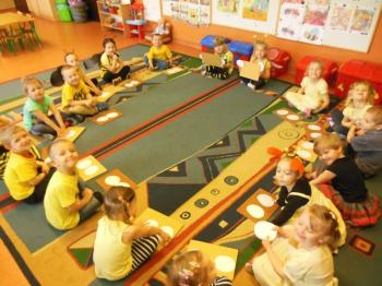 Kolejno dzieci degustowały smaczny i zdrowy miód oraz brały udział w quizie ekologicznym odpowiadając na zadane pytania za pomocą kartoników ze smutną i wesołą minką.