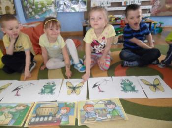 Grupa Żabek tym razem wybrała się na Niezwykłą Wędrówkę z Ekoludkiem. Podczas, której dzieci wykonywały przeróżne zadania, a mianowicie segregowały obrazki dbamy o przyrodę i nie dbamy o przyrodę, układały historyjkę pt. „Jak powstaje miód?”, tworzyły samodzielne rytm z obrazków [ pszczoła, żabka, biedronka, ślimak, motyl ] – naśladowały go ruchem i dźwiękiem.