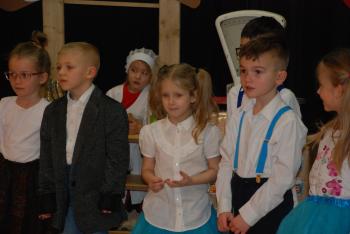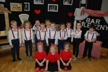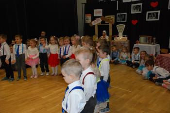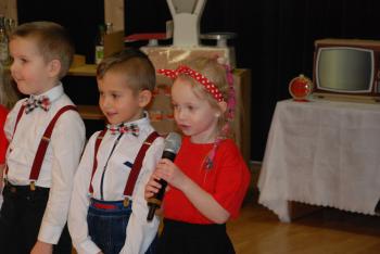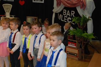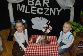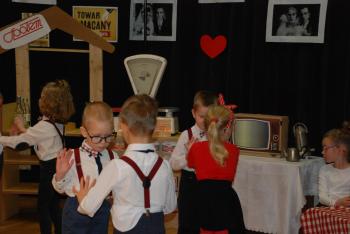 a które nawiązywały do czasów PRL-u. W przepięknej scenografii sklepu „Społem” i Baru mlecznego oraz w wyjątkowej atmosferze, wnuczęta wspaniale wystąpiły przed bliskimi, następnie wręczyły babciom i dziadkom własnoręcznie przygotowane upominki oraz zaprosiły na słodki poczęstunek przygotowany przez rodziców. W ten sposób, dzieci okazały swoim bliskim szacunek