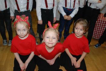 i swoich dziadków do sali widowiskowej w Domu Ludowym w Grojcu na uroczystość z tej okazji. Tygryski, Trefliki oraz Dinusie przygotowały program „Jak za dawnych lat, czyli historia miłości babci i dziadka”. Przedszkolaki od samego rana nie mogły się doczekać, kiedy pojadą na salę, aby się zaprezentować. Licznie przybyli Babcie i Dziadkowie, mieli okazję podziwiać swoje wnuczęta
