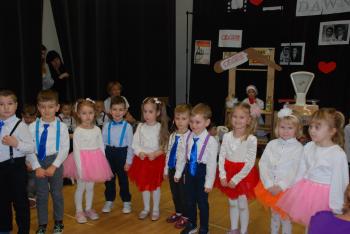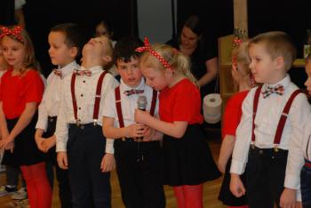 w specjalnie przygotowanym programie artystycznym. Dzieciaki pod czujnym okiem wychowawczyń zaprezentowały wiersze, piosenki oraz tańce, które ćwiczyły na tą uroczystość,