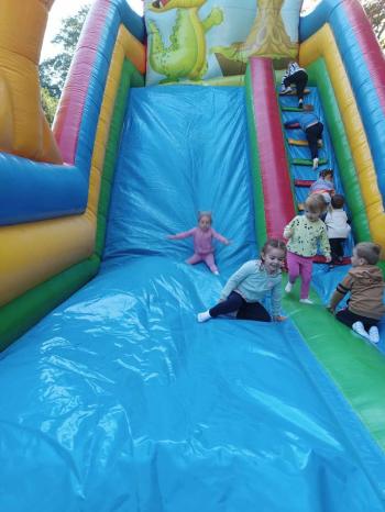 W ubiegły piątek - 20 września nasze przedszkolaki świętowały -Dzień Przedszkolaka. Oj działo się! Były dmuchane zjeżdżalnie, wata cukrowa, pocorn, tatuaże i wiele wiele innych atrakcji. Mamy nadzieję, że dzieci zadowolone, wybawione, wytańczone, wyskakane.