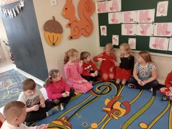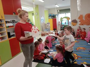 Sala Pszczółek zamieniła się w serduszkową krainę, pełną radosnej atmosfery i uśmiechu. 14 lutego nie tylko obchodzimy święto zakochanych, ale to przede wszystkim dzień miłości, sympatii, przyjaźni oraz okazywania pozytywnych emocji sobie nawzajem. W czerwonych lub różowych strojach dzieci wzięły udział w różnych zabawach walentynkowych przygotowanych przez nauczyciela. Kolejnym ważnym punktem dnia było rozdanie dzieciom Poczty Walentynkowej, do której przedszkolaki wcześniej skrupulatnie wrzucały piękne walentynki. Podczas rozdawania walentynek na twarzach dzieci malował się uśmiech i słychać było zadowolone rozmowy i śmiechy.
