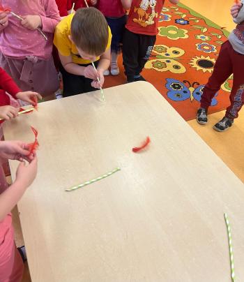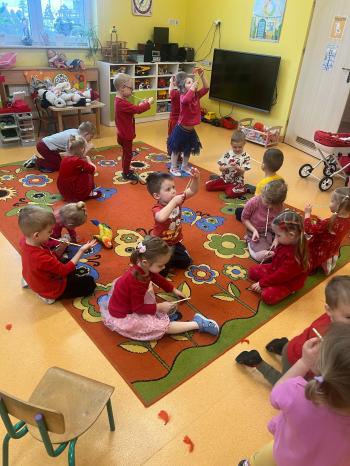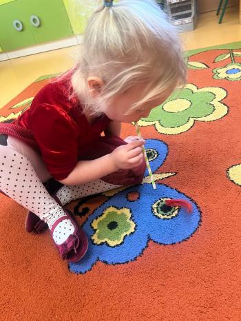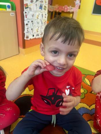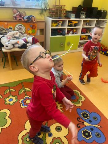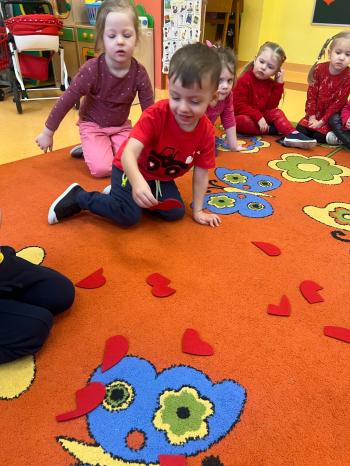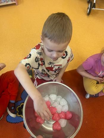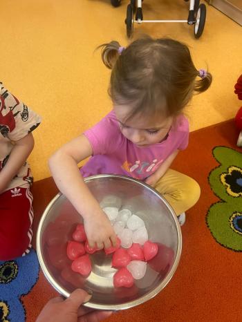 W piątek, 14.02.2025r., nasze maluszki obchodziły Walentynki Motylki przy pomocy lodowych serduszek zapoznawały się z elementami Integracji Sensorycznej, ćwiczyły tor oddechowy dmuchając w czerwone piórka