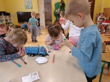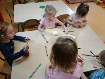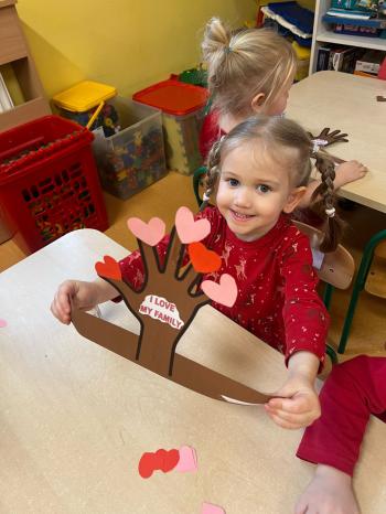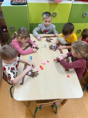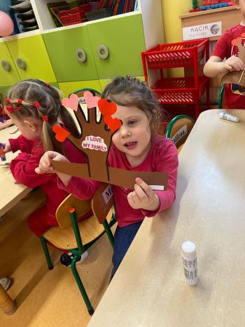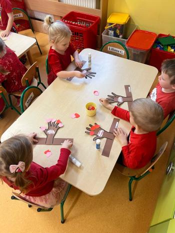 Motylki pięknie pracowały również przy wykonywaniu pracy plastycznej z której powstały miłosne drzewka