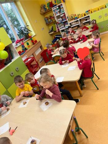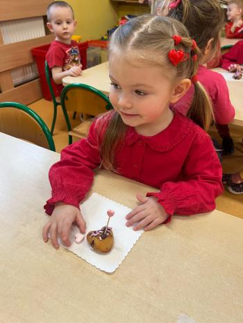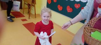 Nasze najmłodsze przedszkolaki otrzymały w tym dniu serduszkowe długopisy, a także, dzięki uprzejmości Pani Agnieszki, zjadły pyyyszne, walentynkowe babeczki