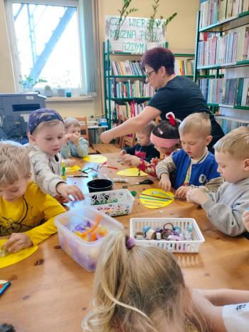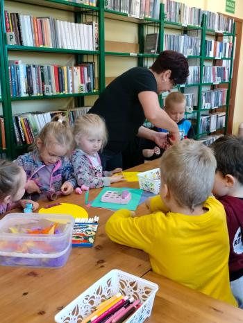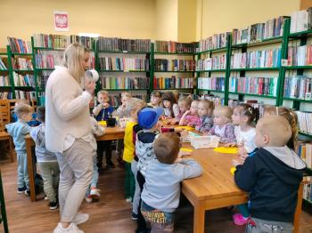 Jeszcze przed świętami dzieci z grupy ,,Biedronek” odwiedziły bibliotekę. Pani E. Dziedzic zaprosiła przedszkolaków, aby porozmawiać o tradycjach związanych ze świętami wielkanocnymi. Dzieci miały również okazję do podzielenia się swoimi spostrzeżeniami i doświadczeniem wyniesionym z domu rodzinnego.