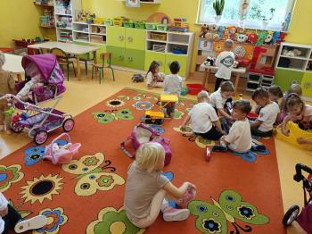 Pierwsze dni w grupie Motylków przebiegają w miłej atmosferze. Każdy dzień w tej grupie przynosi nowe sytuacje i doświadczenia. Nasze małe przedszkolaki wkroczyły w nowy świat i nowe otoczenie, z którym dość płynnie się oswajają i zapoznają. W procesie adaptacji towarzyszą dzieciom różne emocje, tutaj radość przeplata się naprzemiennie ze smutkiem, obawami, tęsknotą za ukochaną mamą i kochanym tatą, którzy do tej pory byli całym ich światem. Nasze Motylki to jednak bardzo rezolutna grupa maluchów, którzy szybko ocierają sporadycznie płynące łzy i oddają się różnorodnym zajęciom.