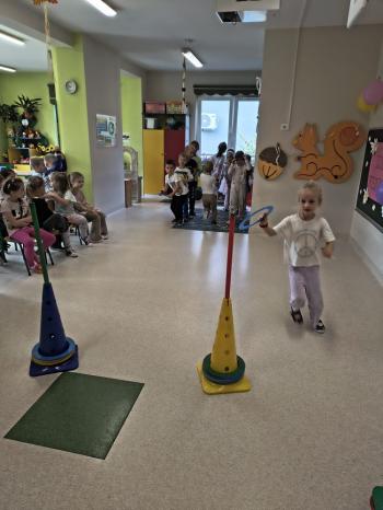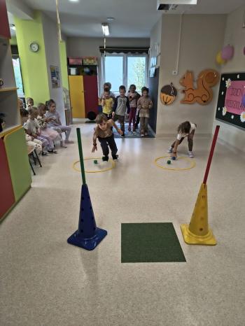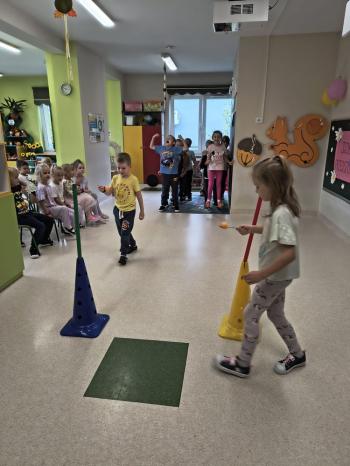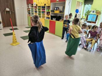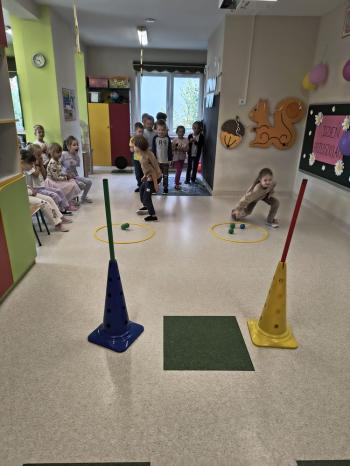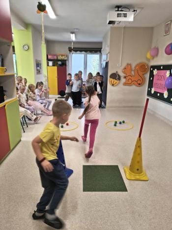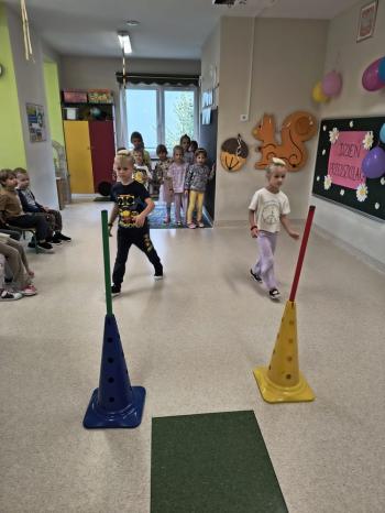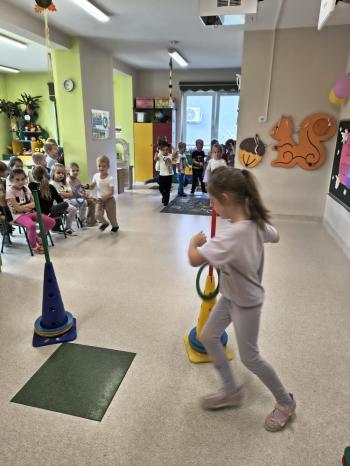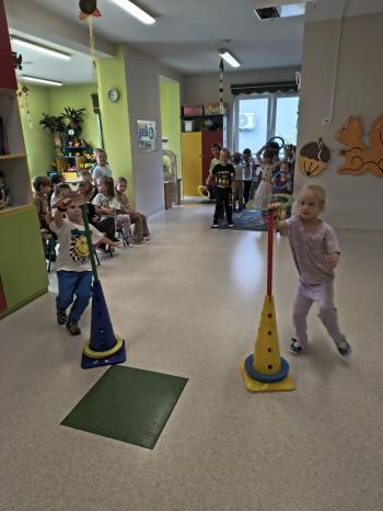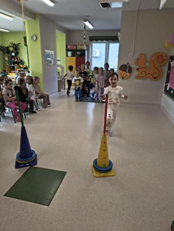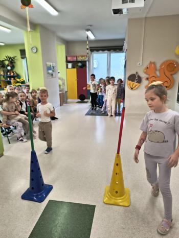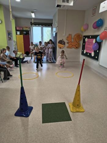 Dzień przedszkolaka w grupie ,,Pszczółek” przebiegł w miłej i sportowej atmosferze. Każdy mógł pochwalić się swoją sprawnością fizyczną, a nuta rywalizacji między chłopcami i dziewczynkami powodowała, że start w konkurencjach jeszcze bardziej mobilizował do szybkiego i sprawnego wykonania zadania.