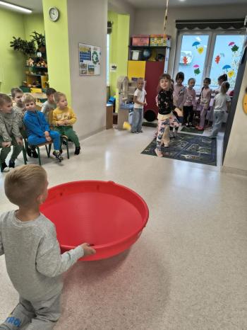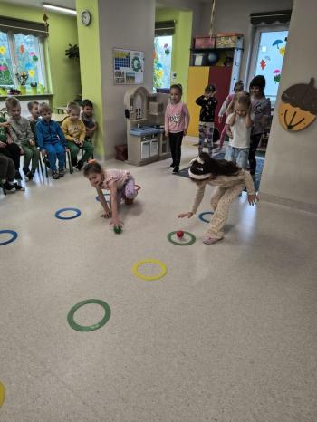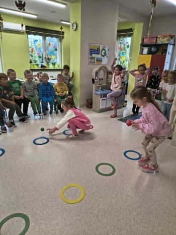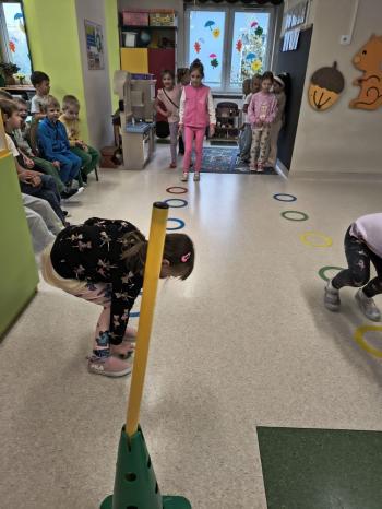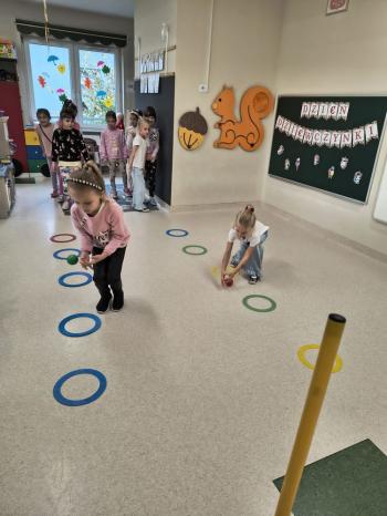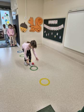 Dzień Dziewczynek w grupie ,,Pszczółek” przebiegał w sportowej atmosferze. Chłopcy z dumą spoglądali na koleżanki, które rywalizując między sobą wykazywały się zręcznością, zwinnością, szybkością oraz umiejętnością łapania piłeczki i rzucania woreczkiem. Doping ze strony chłopaków był bardzo głośny, co tylko zachęcało dziewczynki do jak najlepszego wykonania poszczególnych zadań. Humory wszystkim dopisywały, a zabawa dostarczyła