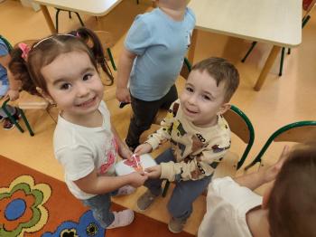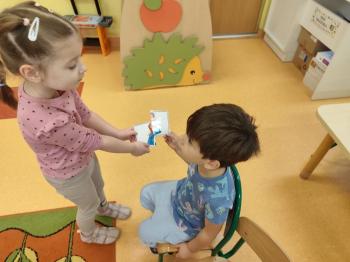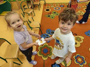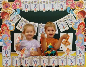 Dzień Dziewczynek w naszej grupie przebiegał w bardzo miłej i radosnej atmosferze. Dziewczynki zostały poddane kilku próbom, z którymi świetnie sobie poradziły, a wszstko to odbywało się pod bacznym okiem chłopców, którzy co rusz nagradzali dziewczynki gromkimi brawami za ich umiejętności. Na początku wysłuchaliśmy skocznej piosenki o Dniu Dziewczynek, następnie były wspólne zabawy przy muzyce, które cieszą się u nas dużym powodzeniem. Dziewczynki perfekcyjnie i z gracją przeniosły filiżankę na tacy, następnie nazywały przedmioty kuchenne i omawiały ich przeznaczenie, a w kolejnej części zabawy dziewczynki układały obrazki dziewczynek pocięte na paski i ku naszemu zdumieniu świetnie sobie poradziły z tym zadaniem. W tym dniu nie zabrakło też zabawy z ksieżniczkami, które tak lubią wszystkie małe dziewczynki i do której włączyli się również chłopcy. Na zakończenie dziewczynki otrzymały drobne upominki i uczestniczyły w mini sesji zdjęciowej.