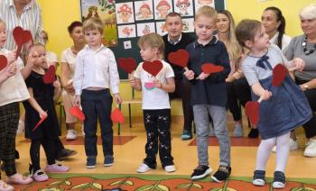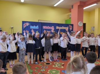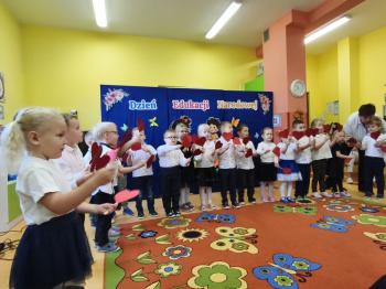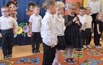 14 października obchodziliśmy w naszym przedszkolu Dzień Edukacji Narodowej. Wszystkie grupy zaprezentowały swój krótki program artystyczny, po zakończeniu którego głos zabrała pani dyrektor składając serdeczne życzenia wszystkim pracownikom przedszkola oraz podziękowania za ich zaangażowanie w wykonywaną pracę. Podczas uroczystości obecni byli również przedstawiciele Rady Rodziców, którzy w imieniu wszystkich rodziców naszych przedszkolaków również złożyli serdeczne życzenia i podziękowania.