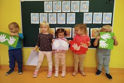 W grupie Motylków obchodziliśmy Światowy Dzień Mycia Rąk. Nasze zajęcia rozpoczęliśmy od historyjki obrazkowej i opowiadania o misiu, który uczył się mycia rąk razem z przedszkolakami. Następnie wykonaliśmy robiące na dzieciach wrażenie doświadczenie z pieprzem, który imtował bakterie i zarazki znajdujące się na naszych dłoniach. Nie zabrakło również działań związanych z myśleniem i spostrzegawczością wzrokową, którą ćwiczyliśmy podczas składania w całość obrazków przedstawiających przybory higieniczne. W kolejnej historyjce dzieci poznały Zarazka, kóry w zabawny i jednocześnie bardzo obrazowy sposób pokazał dzieciom co się dzieje kiedy nie myjemy rąk. Podczas śpiewania piosenki ,,Umyjemy rączki" przypomnieliśmy sobie etapy mycia rąk, gwarantujące ich dokładną higienę. Na zakończenie Motylki wykonały pracę plastyczną, a na pamiątkę tych bardzo pouczających zajęć wszyscy otrzymali medale MISTRZA i MISTRZYNI MYCIA RĄK.