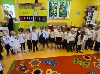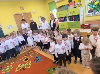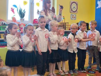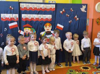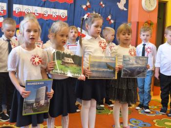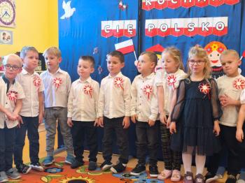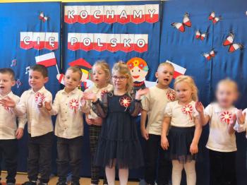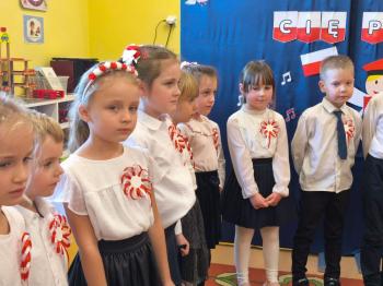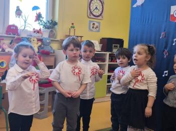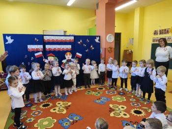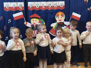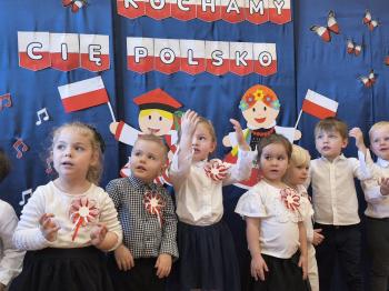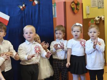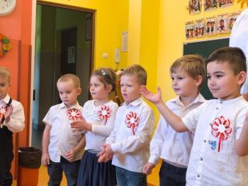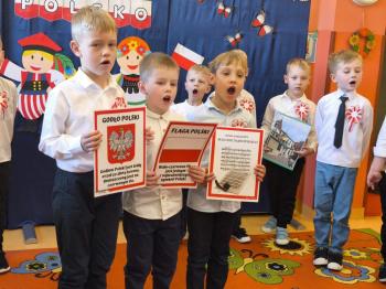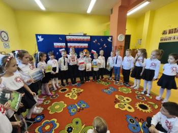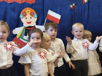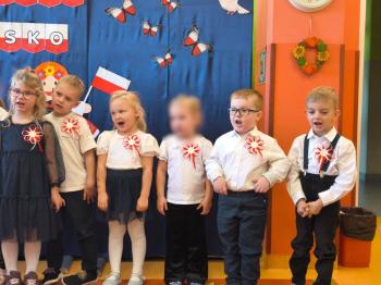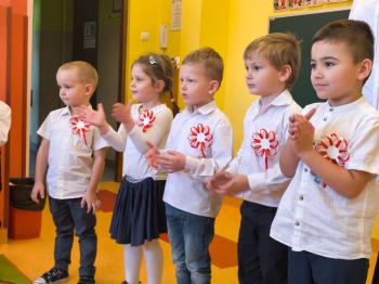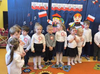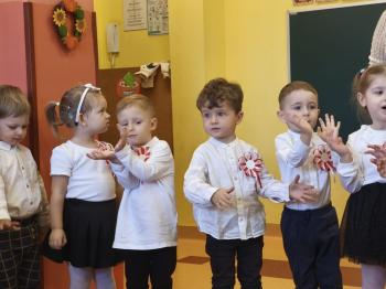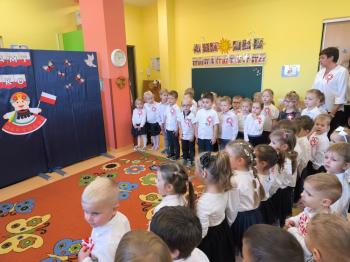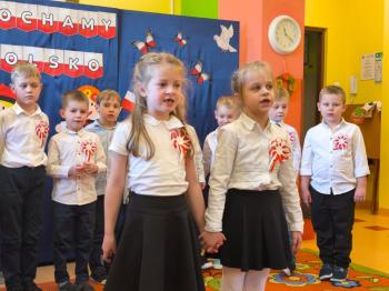 W piątek 7 listopada, jak każdego roku nasze przedszkole dołączyło do akcji „Szkoła do hymnu.” Z okazji zbliżającego się Święta Niepodległości, wszystkie dzieci zebrały się w jednej sali, aby o symbolicznej godzinie 11:11 uroczyście odśpiewać hymn narodowy. Następnie, każda grupa wykonała przygotowane krótkie programy artystyczne, które dawały wyraz pięknej patriotycznej postawy przedszkolaków i potrafiły wzruszyć do łez.