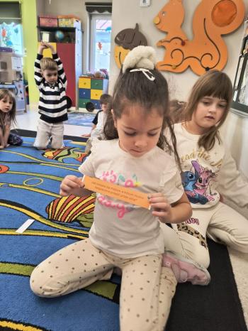 - uczestniczyły w zajęciach dotyczących bezpiecznego zachowania podczas wycieczki do lasu, ucząc się, jak dbać o przyrodę i jak reagować w sytuacji zagubienia,