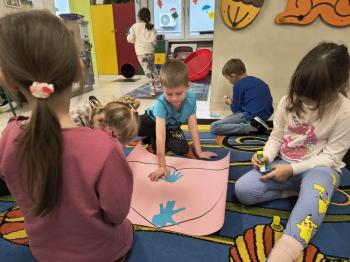W drugiej części zajęć dzieci wykonały pracę plastyczną związaną z tematyką praw dziecka. Zajęcia pozwoliły dzieciom lepiej zrozumieć, że każde dziecko ma swoje prawa, ale również obowiązki wobec innych i otoczenia.