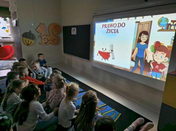 Na początku obejrzały edukacyjny film, który w przystępny sposób wyjaśniał, jakie prawa przysługują każdemu dziecku, m.in. prawo do nauki, zabawy, opieki, miłości i bezpieczeństwa. Po projekcji odbyła się rozmowa kierowana, podczas której dzieci dzieliły się swoimi spostrzeżeniami, zadawały pytania oraz podawały przykłady sytuacji, w których korzystają ze swoich praw i wypełniają obowiązki.