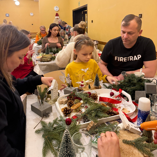 Uczestnicy najpierw tworzyli piękne kompozycje na cele charytatywne – wszystkie stroiki zostaną przekazane do Stowarzyszenia Pozytywni na świąteczny kiermasz.