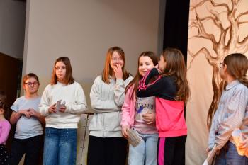 Po spektaklu aktorzy przeprowadzili krótką, ale bardzo wartościową pogadankę o dezinformacji w internecie oraz o tym, jak sztuczna inteligencja może być wykorzystywana do tworzenia fałszywych treści. Uczestnicy dowiedzieli się, jak rozpoznawać nieprawdziwe informacje i dlaczego warto zawsze sprawdzać źródła.