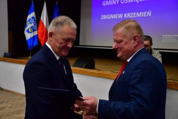 a następnie przewodniczącego Komisji Polityki Gospodarczej i Budżetu Gminy, a także pracując w Komisji Rewizyjnej oraz w Komisji Skarg, Wniosków i Petycji. W jego działalności samorządowej dominuje rzetelność, merytoryczność i troska o przejrzystość decyzji podejmowanych dla dobra mieszkańców. Wieloletnia aktywność Pana Zbigniewa Krzemienia w Radzie Sołeckiej Brzezinki, jak również jego znaczący wkład w rozwój i funkcjonowanie ochotniczego pożarnictwa – jako Sekretarza Zarządu OSP Brzezinka oraz członka Prezydium Zarządu Oddziału Miejsko-Gminnego Związku OSP RP w Oświęcimiu – potwierdzają jego głębokie zakorzenienie w lokalnej społeczności i gotowość do podejmowania działań na jej rzecz.Na szczególne podkreślenie zasługują jego starania związane z realizacją ważnych inwestycji w Brzezince, takich jak: budowa sieci kanalizacji sanitarnej, budowa przedszkola oraz przebudowa szkoły podstawowej. Inicjatywy te trwale podniosły jakość życia mieszkańców i przyczyniły się do dynamicznego rozwoju miejscowości.Jako wieloletni samorządowiec i działacz społeczny, jest osobą kompetentną, pomocną, życzliwą i głęboko oddaną zasadom, które konsekwentnie realizuje zarówno w pracy publicznej, jak i społecznej. Cieszy się powszechnym szacunkiem oraz zaufaniem mieszkańców.W świetle powyższych zasług działalność Pana Zbigniewa Krzemienia w sposób wyjątkowy wpisuje się w ideę tytułu „Zasłużony dla Gminy Oświęcim”, kierowanego do osób szczególnie zasłużonych dla rozwoju gminy, pomyślności jej mieszkańców oraz wzmacniania lokalnej wspólnoty.