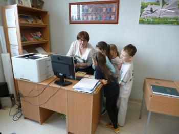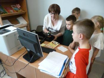 Dzieci ze świetlicy szkolnej w ramach Października Miesiąca Bibliotek Szkolnych również odwiedziły swoją szkolną bibliotekę, w której z uśmiechem powitała nas bibliotekarka pani Basia. Zajęcia rozpoczęły się od wprowadzenia, podczas którego pani bibliotekarka opowiedziała dzieciom o tym, czym jest biblioteka, jak można z niej korzystać, jak powstała książka, jak należy obchodzić się z książkami i jakie rodzaje książek można wypożyczyć w bibliotece. Uczniowie dowiedzieli się także, w jaki sposób mogą zapisać się do biblioteki i jakie zasady obowiązują przy wypożyczaniu książek.