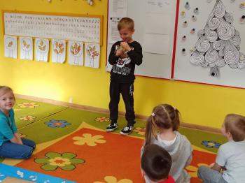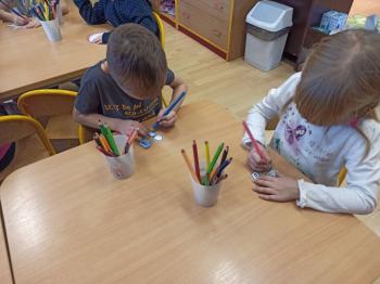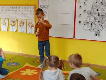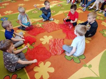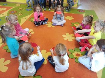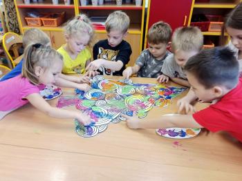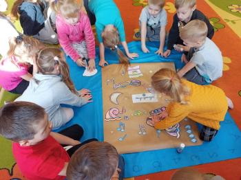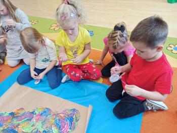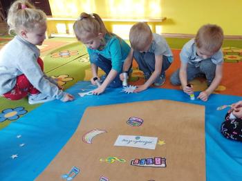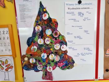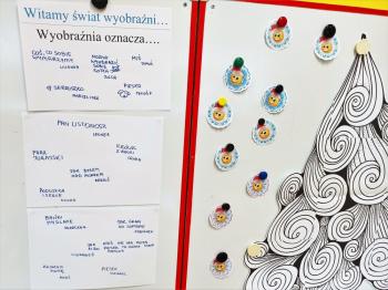 30 listopada rozpoczęliśmy realizację drugiego modułu projektu edukacyjnego „Emocja” – Kraina Wyobraźni. Podczas zabaw i zajęć dzieci zainspirowane muzyką i literaturą próbowały odpowiedzieć, czym jest dla nich wyobraźnia, jak ją zdefiniować, opisać. Wspólnie wykonały ilustrację do wiersza Natalii Martenki „Nasza wyobraźnia”, zaprezentowały Taniec Wyobraźni do fragmentów utworów „Messages” – Vangelis, Blackomors Night „Magical World”, a na zakończenie zajęć malowały drzewko wyobraźni, na którym zawisły rysunki przedstawiające marzenia przedszkolaków.
